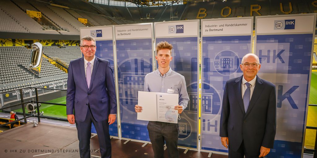 Unser Nicolas wurde IHK-Bester   Am 16. September ehrte die IHK zu Dortmund im Signal-Iduna Park alle TOP-Azubis aus der Region, die ihre Ausbildung in diesem Jahr mit der Gesamtnote „Sehr gut“ abgeschlossen haben. IHK-Präsident Heinz-Herbert Dustmann übergab nach seiner Ansprache gemeinsam mit Wulf-Christian Ehrich, stellvertretender Hauptgeschäftsführer, Ehrenurkunden an die…